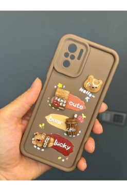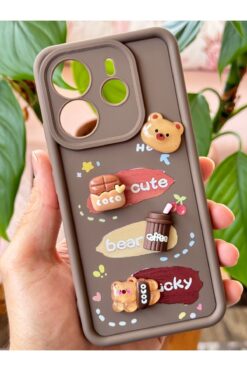 Fibaks Oppo A55 4G Kılıf Tasarımlı Desenli Kamera Korumalı Ayıcık Kahve Renkli Yumuşak Silikon Kap