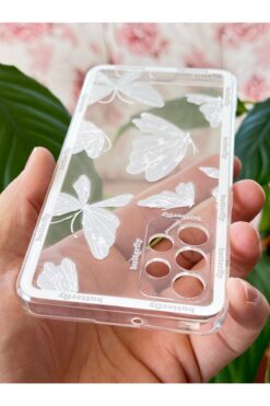 Fibaks Apple iPhone 14 Pro Max Kılıf Fiyonk Desenli Şeffaf Simli Gümüş Kamera Çıkıntılı Parlak Kapak