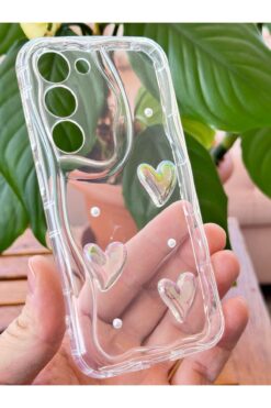 Fibaks Galaxy A56 Uyumlu Kılıf Fiyonk Desenli Şeffaf Simli Gümüş Kamera Çıkıntılı Parlak Kapak