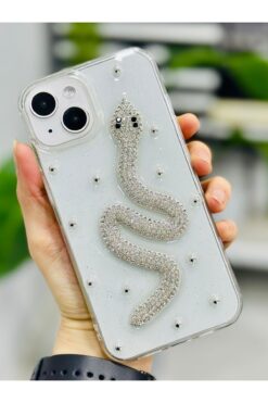Go Aksesuar Iphone 13 – 14 ve 15 Uyumlu TAŞLI YILAN Oyuncak Tasarımlı Esnek Silikon Kılıfı