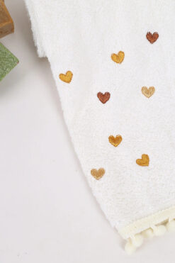 Çeyiz Merkezi Ponponlu Kalpli El Yüz Havlusu 50×90 KREM