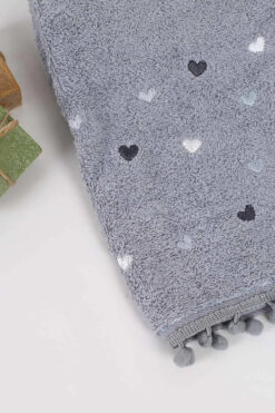 Çeyiz Merkezi Ponponlu Kalpli El Yüz Havlusu 50×90 GRİ