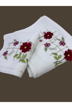 TUTUYA TEXTIL YONCAGÜL NAKIŞLI BEYAZ RENK ANALI KIZLI HAVLU TAKIMI ÇEYİZLİK HAVLU 3 BOTLU HAVLU