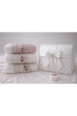 Coton Delux Pera 3’lü %100 Pamuk Havlu Seti | Banyo Havlusu | Çantalı, Çeyizlik, Hediyelik| 70×140 cm
