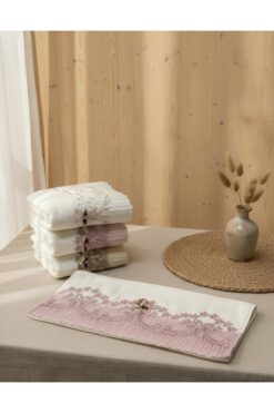 COTTOWEL’S Lalin Güpürlü ve Dantelli 3’lü 50×90 El Havlusu / El ve Yüz Havlusu / Çeyiz Seti / Havlu Paketi