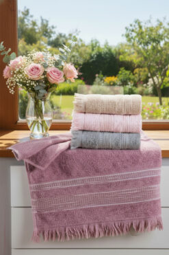 MODALİN 4 Lü Banyo Havlusu Seti Dora Bej – 70X140cm x2 / 50x90cm x2