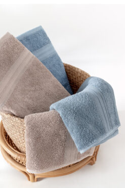 Yataş Angelina 4’lü Banyo Havlu Seti (50×90 cm/70×140 cm) – Mavi / Vizon