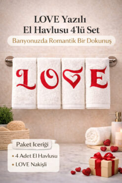 Rebeka Home Collection LOVE Nakışlı 4’lü El Havlusu Seti 30×50 Dekoratif Havlu