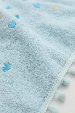 FAVORA Yoncagül Ponponlu 2li El Yüz Havlusu 50×90 – Mavi