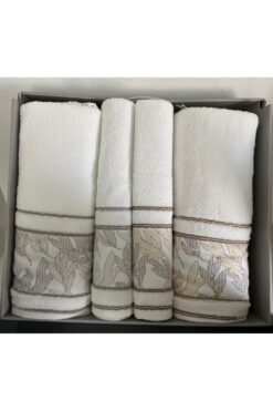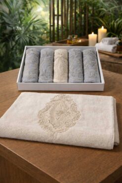Nevvera Home Nakışlı Lüks Banyo Havlu Seti | %100 Pamuk | Yüksek Emici | Şık Kutulu 6’lı Havlu Seti