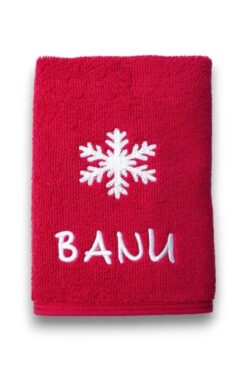 Atölye Müge Kişiye Özel Yılbaşı Havlusu – İsimli Nakışlı Kar Tanesi Temalı El Havlusu 30×50 cm Kırmızı Yeni Yıl