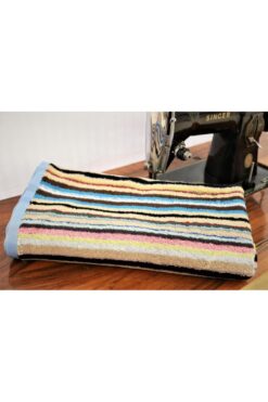 Ender Home 70×140 Rengarenk İplik Boya Havlu Plaj Havlusu Çizgili Mavi Bordür Bukle Hamam Spa Banyo Havlusu