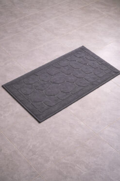 Ellaline Ayak Havlusu %100 Pamuk Sertifikalı, Taş Desenli Jakarlı Banyo Paspası Üstün Emici Antrasit 50x70cm