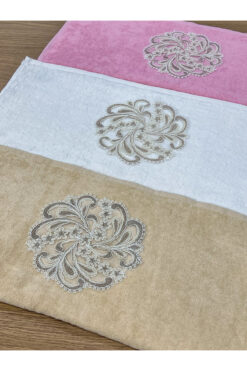 AYHANHOME 6’lı Fransız Güpür İşlemeli Desenli Lüks Çeyizlik 50×90 Kutulu El Yüz Havlu Seti