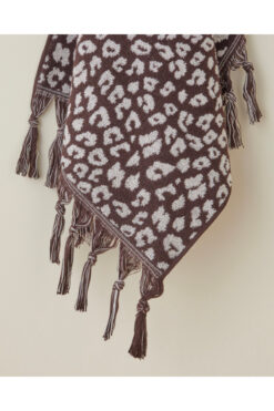 English Home Noir Leopard Pamuk Püsküllü Yüz Havlusu 50×80 cm Ekru-Kahve