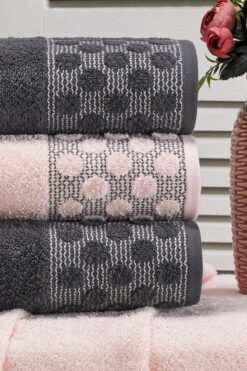 eumenia Point Antrasit Pudra El ve Yüz Havlu Seti 50×90 cm 4’lü