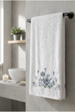 Bella Home Bambu Pamuk Çiçek Nakışlı 50 x 90 cm Nakışlı El Havlusu