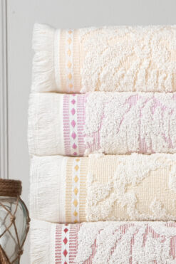 Bersay 4’lü 50×80, %100 Pamuk Jakarlı ve Saçaklı Mutfak & El Havlu Seti – Yumuşak, Emici ve Dayanıklı