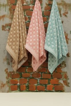 Ecocotton Hüma 3’lü Havlu Seti %100 Pamuk Kapitoneli Bej