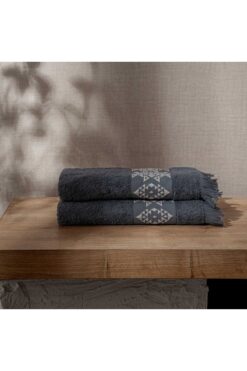 Green Black Hereke 2’li Yüz Havlusu Seti Krem Bordürlü Antrasit