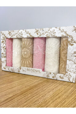AYHANHOME 6’lı Fransız Güpür İşlemeli Desenli Lüks Çeyizlik 50×90 Kutulu El Yüz Havlu Seti