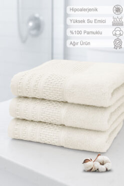 Vionel Home Softure 3’lü El Yüz Havlusu | Günlük Kullanım | 50×90 Cm | Ekru | Yumuşak, Dayanıklı