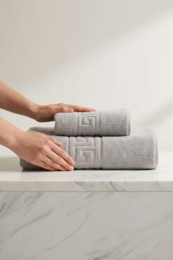Rivaİstanbul Gri Greek 2’li %100 Pamuklu Havlu Seti