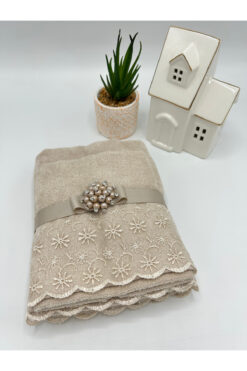 LenaToptan Vizon 2’li Güpürlü Dantelli 30×50 ve 50×90 cm Havlu Seti ( Bohçalık – Çeyizlik – Hediyelik )