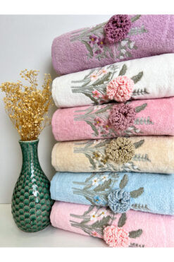 Nazik Home Hanzade Çiçek İşlemeli Yüz Havlusu (50 x 90 cm)