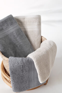 Yataş Angelina 4’lü Banyo Havlu Seti (50×90 cm/70×140 cm) – Bej / Gri