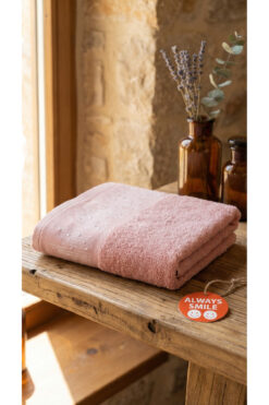 Dantela Bambu Fransız Güpürlü Çeyizlik Lüks Havlu – Renk : Pudra : 1 Adet – Model : Kelebekli