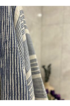 Monochrome Müslin-Banyo & Plaj Havlusu Peştemal -4 Kat % 100 Pamuk(190 cm x 100 cm) Mavi- Ekru Çizgili