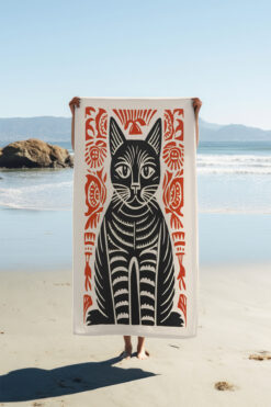 PATRON Dijital Baskı Plaj Deniz Havlusu Kedi Desenli Peştamal HVL0139