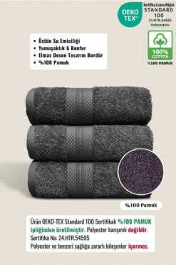 Ellaline 3’lü Havlu Seti %100 Pamuk Sertifikalı Elmas Desen Bordür Antrasit El / Yüz Havlusu Takımı 50x80cm