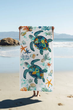 PATRON Dijital Baskı Plaj Deniz Havlusu Kaplumbağa Desenli Peştamal HVL0117