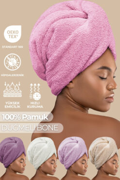 Miss Paris Home Düğme Lastikli Saç Havlusu, Saç Bonesi, Makyaj Bonesi, Yüz Bakım Havlusu, Banyo Sonrası Saç Kurutma