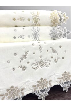 AYHANHOME 3 Lü Kadife Lüks Fransız Güpürlü Çeyizlik 50×90 El ve Yüz Havlusu
