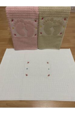 AYHANHOME 3 Adet Pudra*krem*kahve Renk Nakışlı Ayak Havlusu %100 Pamuk Ölçü:50×70