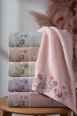 Semecca Lia Soft Bordürü Serisi 3’lü Havlu Seti 50×85