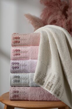 TICOTTO Filiz 50×90 cm %100 Pamuk Nakışlı Havlu Seti – 3’lü, Yüksek Emici, Ultra Yumuşak, Askılı