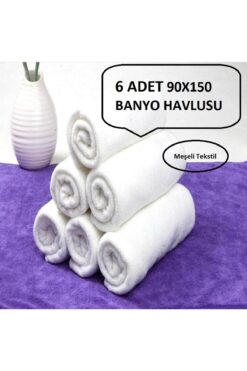 MEŞELİ TEKSTİL 6’Lı Beyaz Otel Banyo Havlusu Battal 90×150 Cm | Hızlı Kuruyan