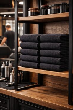 Elaganya 8’li Siyah Berber Havlusu 50×90 cm | Pamuklu, Leke Tutmayan, Profesyonel Kuaför Havlu Seti
