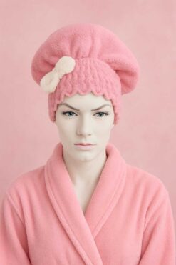 Genel Markalar Saç Kurulama Banyo Duş Bonesi – %100 Pamuk , Fiyonklu Pembe