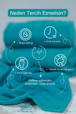 denizlicotton Kuaförlere Özel Boya Tutmayan Mikrofiber Saç Havlusu 50×90 cm 2’li Set