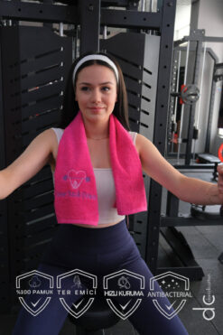 denizlicotton Nakışlı Sporcu Havlusu Pamuklu, Anti bakteriyel, Ter Emici Fitness Plates Boks Tenis Spor Havlusu