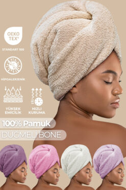 Miss Paris Home Düğme Lastikli Saç Havlusu, Saç Bonesi, Makyaj Bonesi, Yüz Bakım Havlusu, Banyo Sonrası Saç Kurutma