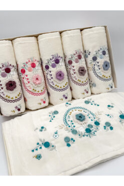 Hazangülü Buldan Üretimi Çeyizlik Nakışlı Fulya 6’lı El/Yüz Havlusu I 50×90