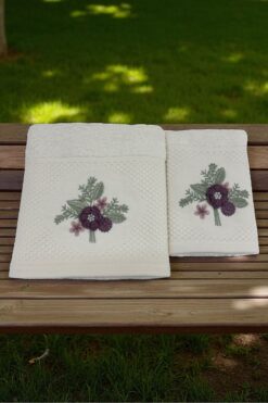 POKUT Ponponlu 2’li Havlu Seti %100 Pamuk – Analı&Kızlı Çeyizlik Hediyelik El Havlusu Takımı
