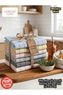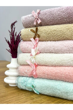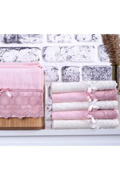 AYHANHOME 6’lı %100 Pamuklu Kadife Dantelli Güpürlü Fiyonklu Çeyizlik 30×50 Mutfak Havlusu