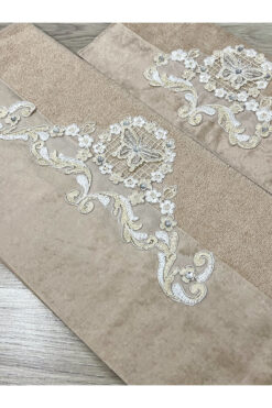 AYHANHOME Fransız Güpür İşlemeli Kadife Çeyizlik 1 Adet 50×90 El Yüz Havlusu 1 Adet 30×50 Mutfak Havlu